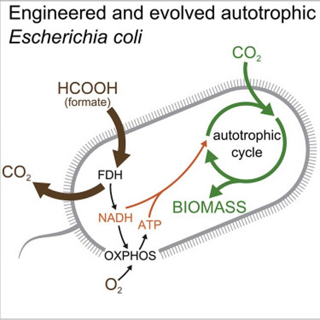 研究人員向大腸桿菌基因中添加一種轉(zhuǎn)化二氧化碳的酶,并且去除了用于代謝糖的其它酶,最終成功改變了它們賴以生存的“食物”來源。為了證明它們真的不需要糖來維持生存,科學家們把這些細菌放在實驗室里200天。當再次對這些細菌進行研究時,研究人員發(fā)現(xiàn)它們已經(jīng)成功地”進化”了,而且能夠在不需要糖的情況下生長。