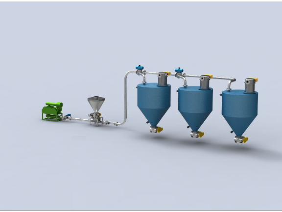 氣力輸送管道有單管輸送、雙管輸送和雙套管輸送,單管輸送主要用于稀相輸送,雙管及雙套管可以實(shí)現(xiàn)密相輸送,并且雙套管輸送多用于飛灰輸送。