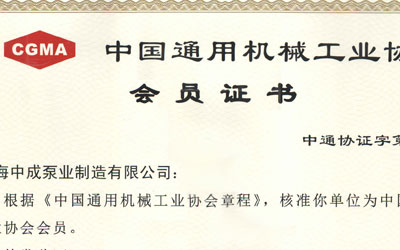 中國(guó)通用機(jī)械工業(yè)協(xié)會(huì)會(huì)員證書(shū)