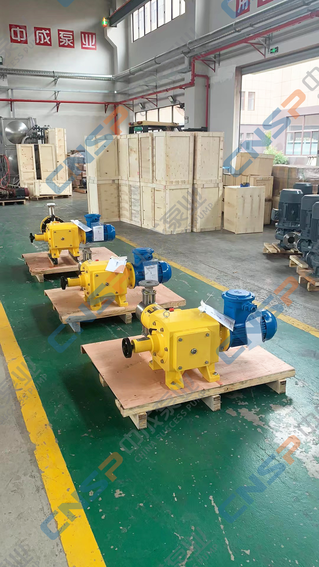 山東某聚合新材料科技有限公司在我廠采購一批J-D柱塞計量泵和JYD液壓隔膜計量泵,防爆電機,用于輸送無顆粒雜質(zhì)、無黏度介質(zhì),生產(chǎn)檢驗完工已交付客戶使用。