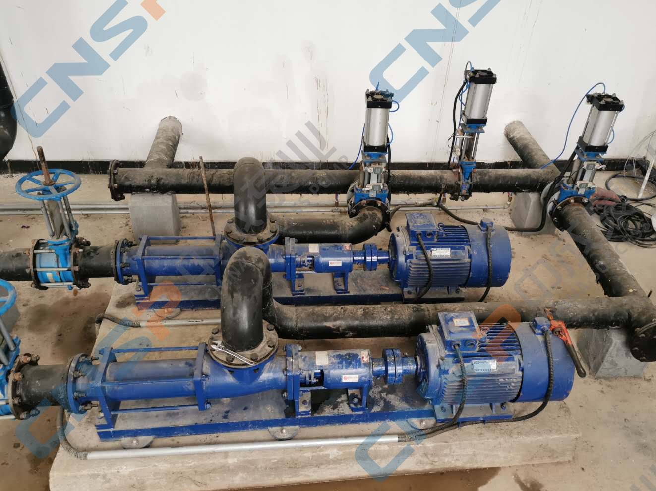 湖南某建材廠在我廠采購一批螺桿泵,型號(hào)為G70-2,用來抽污水。近期反映螺桿泵低頻啟動(dòng)困難,中成泵業(yè)技術(shù)工程師建議工頻啟動(dòng),啟動(dòng)后再降低頻率,指導(dǎo)客戶現(xiàn)場調(diào)試完畢,螺桿泵成功啟動(dòng)恢復(fù)正常運(yùn)行。